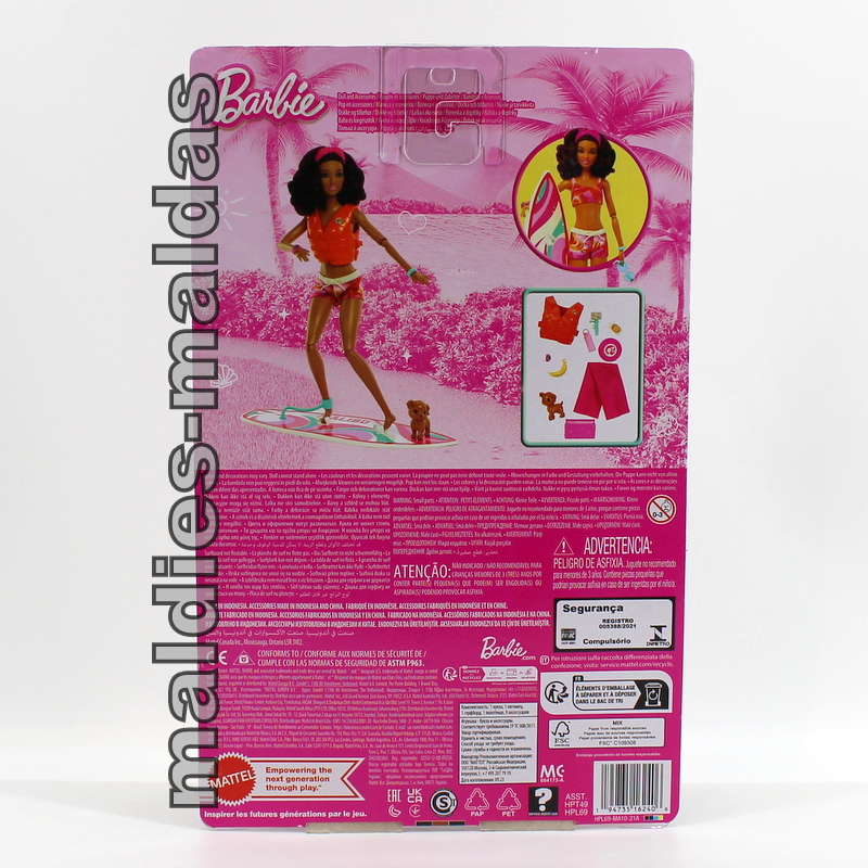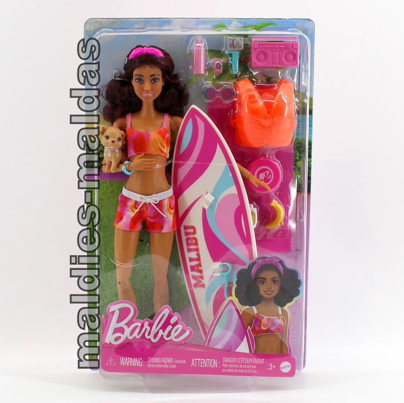 Barbie Surf Doll Malibu Strandpuppe mit Surfbrett und Zubehör HPL69